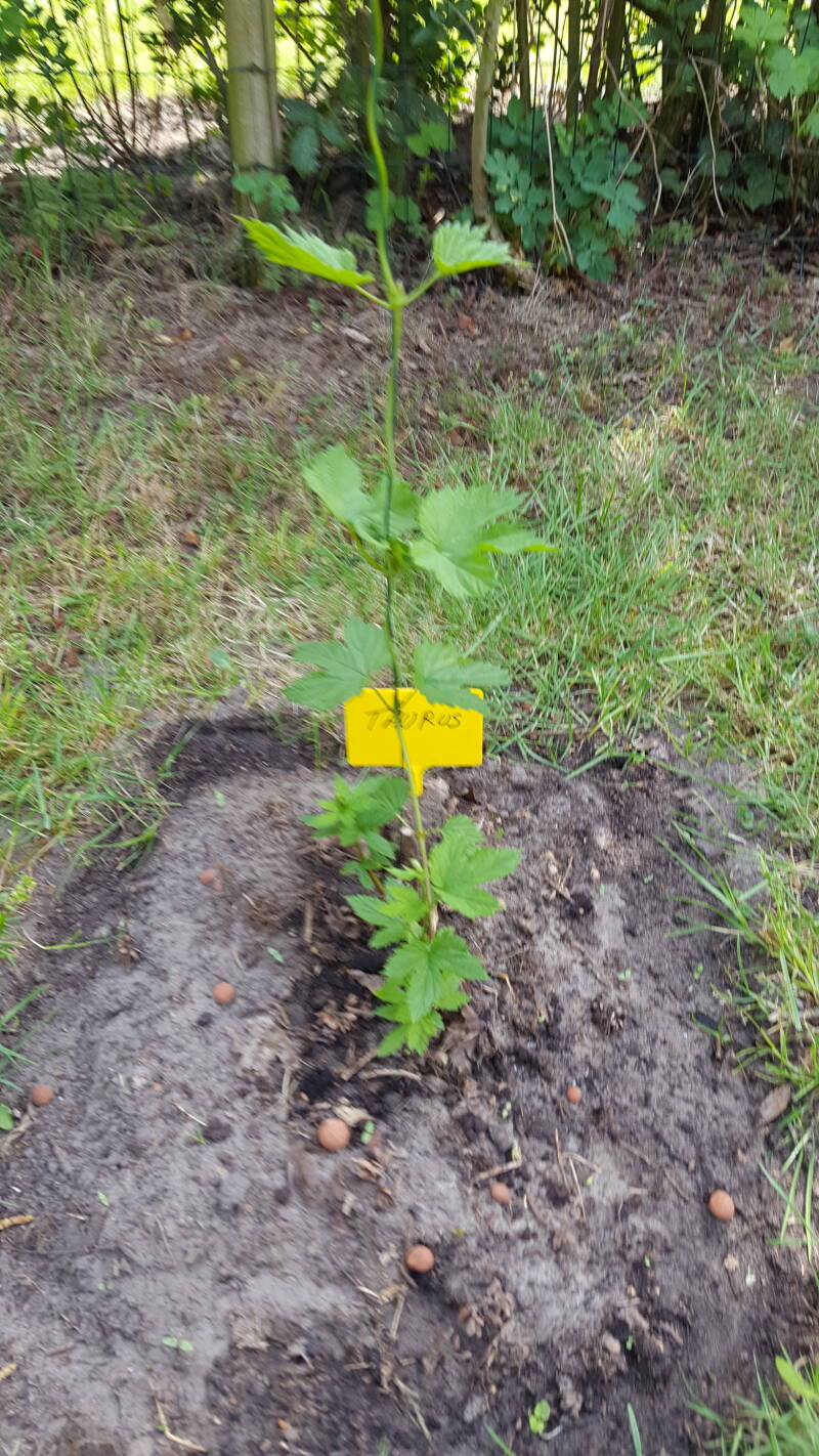 In het Hopveld staan 4 verschillende hoppen nl: 2 aroma hoppende Saphir ( 3,5% Alfazuur) en de Herzbrucker (3,2 % Alfazuur)